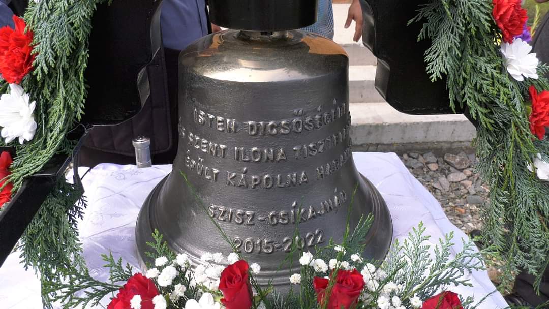 Augusztus 14-én, vasárnap az épülő Szent Ilona-kápolnánál harangszentelésre gyűltünk össze. A 39 kg-os harangot Lázár Imre udvarhelyi harangöntő műhelyében készíttette és adományozta a közösségnek: id. Máté József és lánya, Mária, ifj. Máté József és családja. Isten fizesse!
