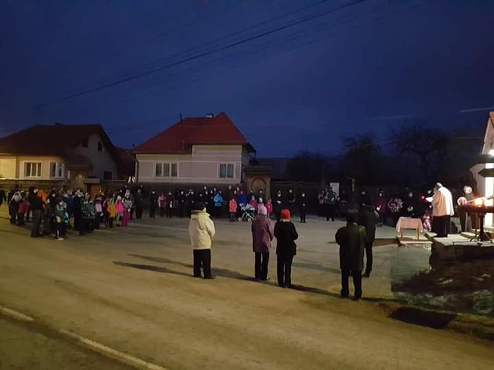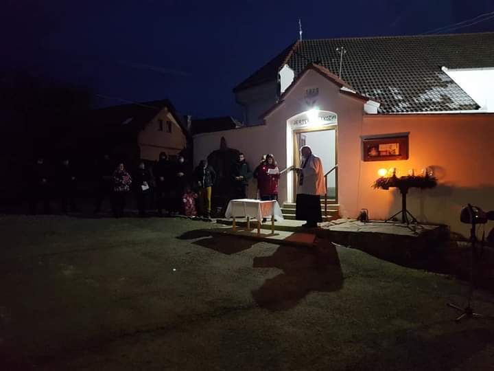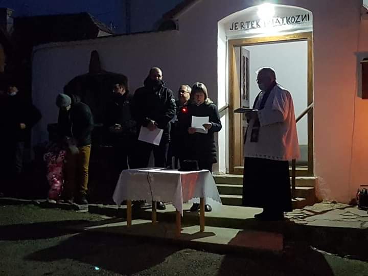 Ünnepélyes gyertyagyújtás az ajnádi templomtéren